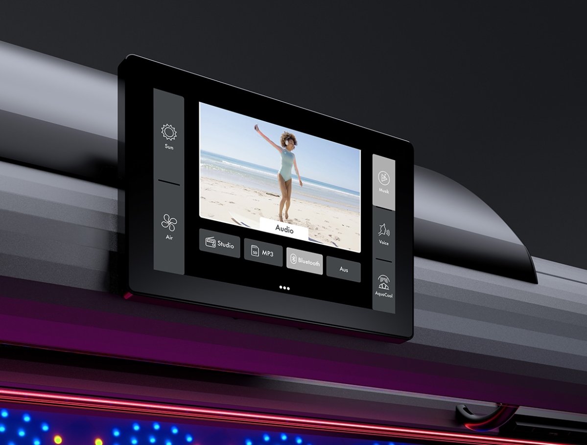 Verbinde Dein Smartphone ganz einfach per Bluetooth mit dem Solarium. Genieße so die Musik Deiner persönlichen Playlist während der Besonnung.