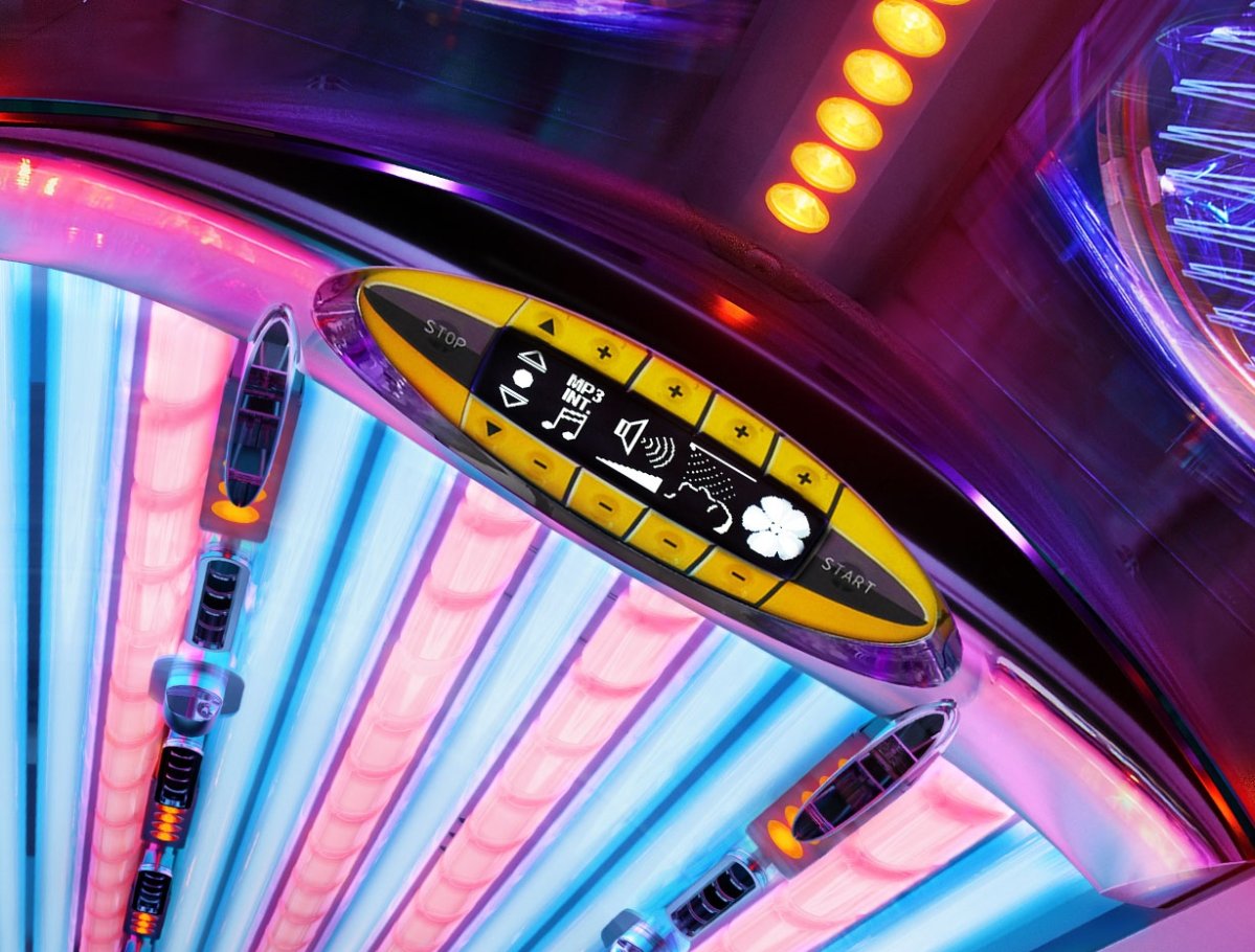 Benutzerfreundliche Bedienung aller wichtigen Funktionen während der Besonnung. Klar strukturiert und intuitiv.