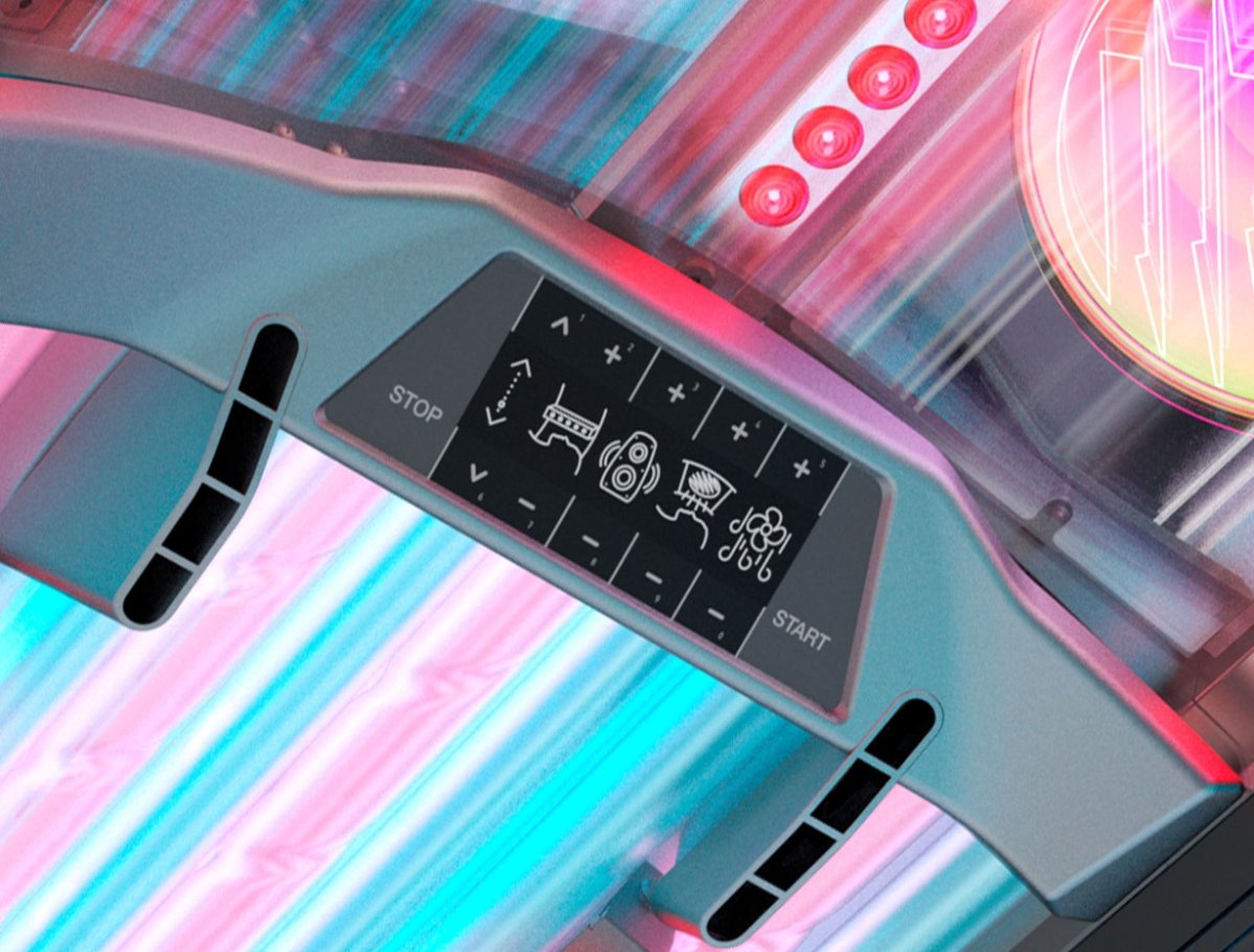 Benutzerfreundliche Bedienung aller wichtigen Funktionen während der Besonnung. Klar strukturiert und intuitiv.