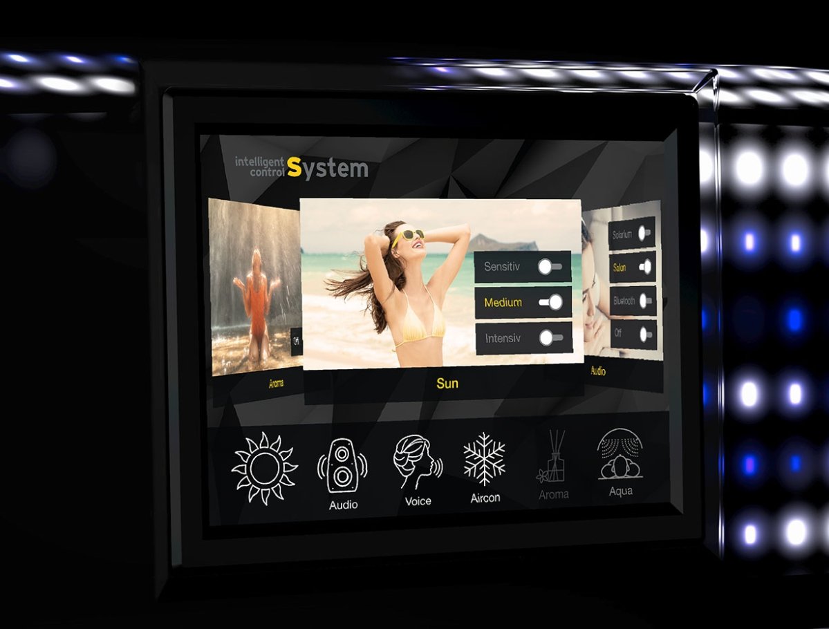 Intuitive Funktionssteuerung für Kunden vor der Besonnung. einfacher Zugang zu Wartungs- und Serviceeinstellungen für Betreiber.
