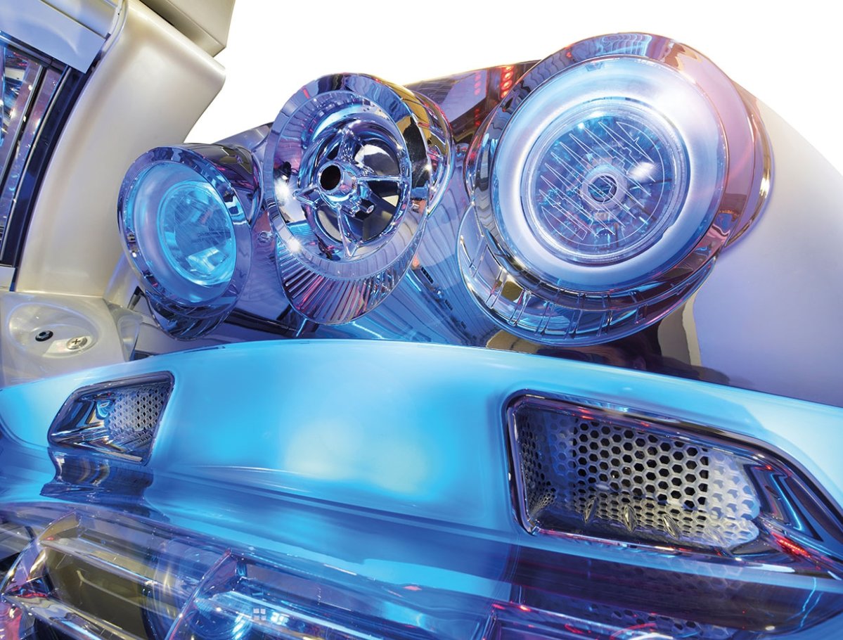 Gleichmäßige und intensive Besonnung im Schulterbereich durch moderne Hochdrucksysteme mit Filterscheiben und Refektoren aus Glas.