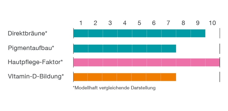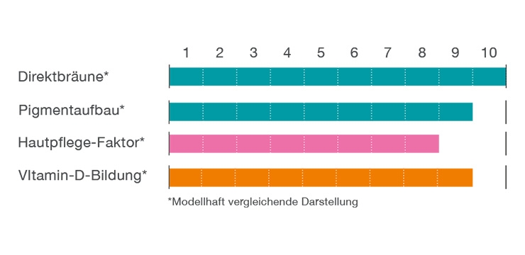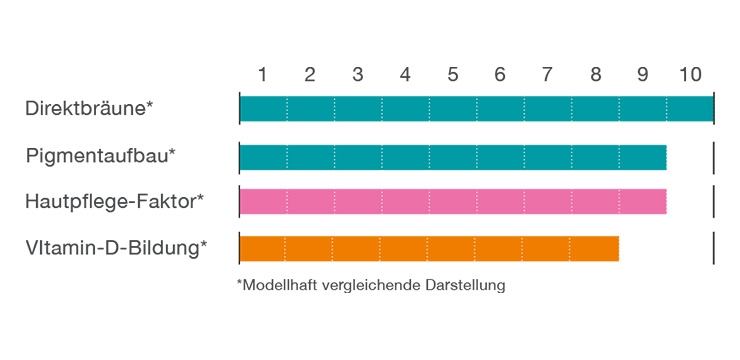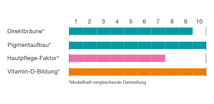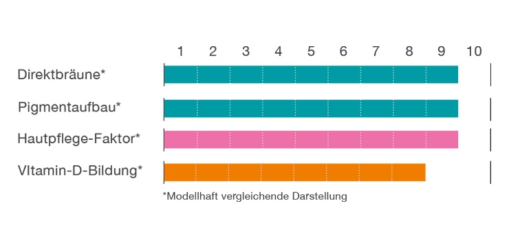 Im Gesichts- und Dékolletébereich finden intensives Sonnen-Licht sowie hautpflegendes Beauty-Licht, speziell aufeinander abgestimmt, ihre Anwendung.