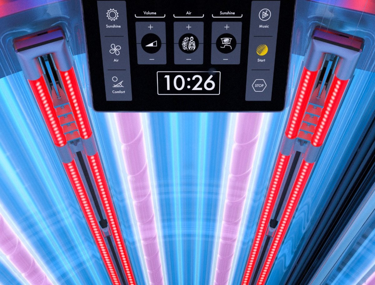 AirBreeze sets new standards in ventilation technology for tanning beds. The separately adjustable intensity for body and face adapts to every body. The air streams can also be directed in the facial and décolleté areas.