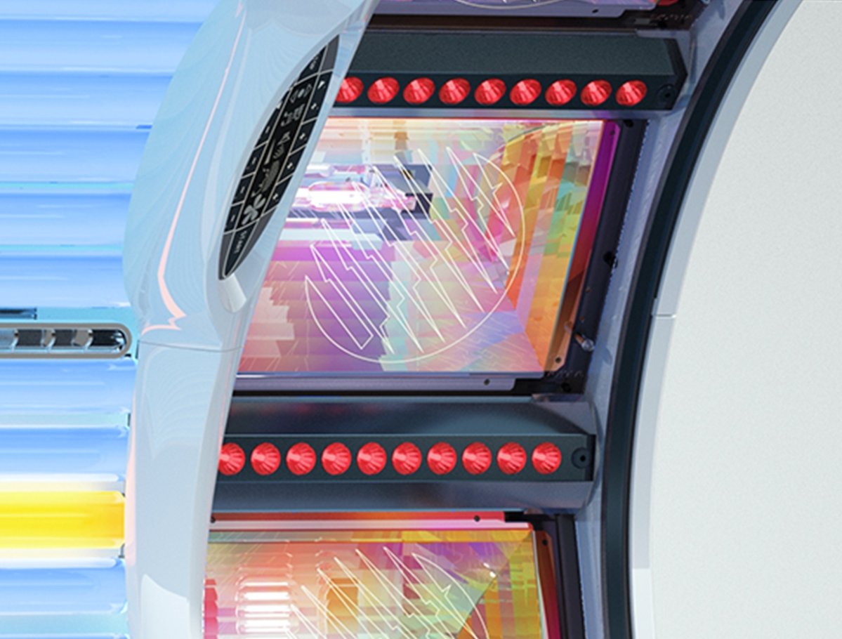 With the help of a new chip set and an improved lens we’ve improved the effectiveness of our Beauty Booster by a further 16%. In addition to an increase in performance, we’ve also succeeded in optimising the illumination image by means of special diffusing lenses. This advance is now available in all current megaSun solariums and guarantees an optimal result.