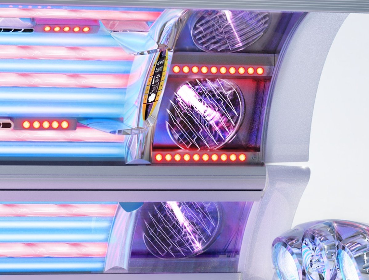 Facial tanner with specially coated filter discs and glass reflectors. Maximum tanning comfort for face and décolleté.