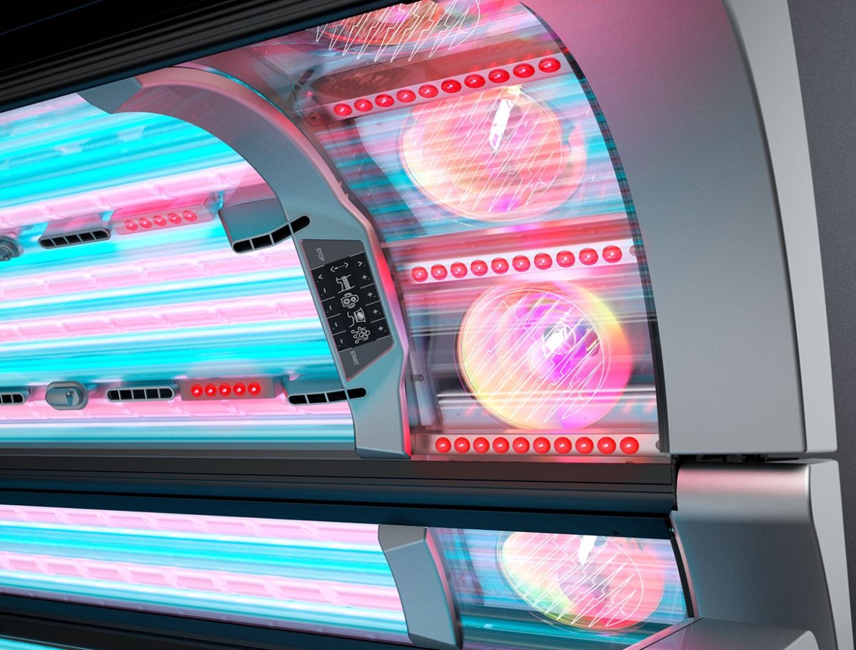 Facial tanner with specially coated filter discs and glass reflectors. Maximum tanning comfort for face and décolleté.