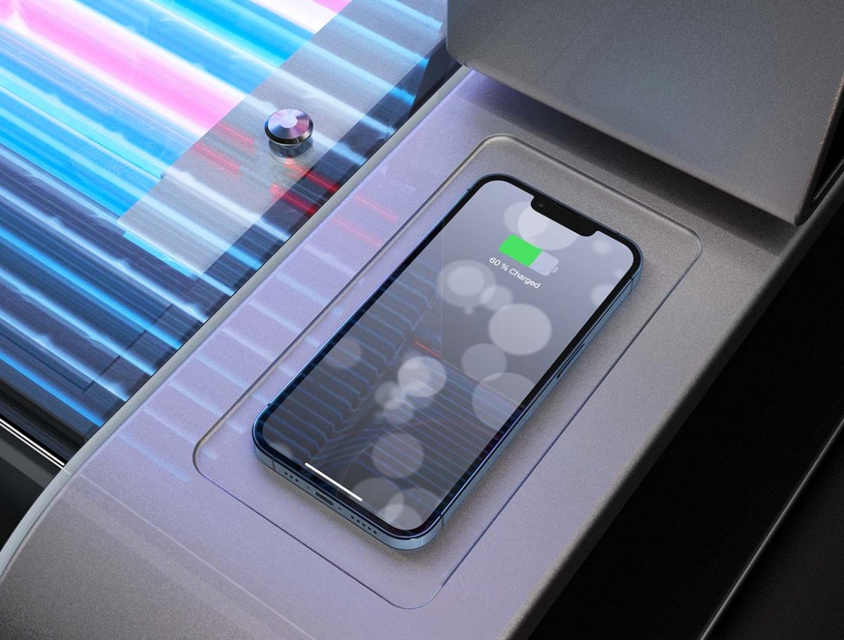 Simple, wireless charging of all suitable smartphones during tanning sessions.