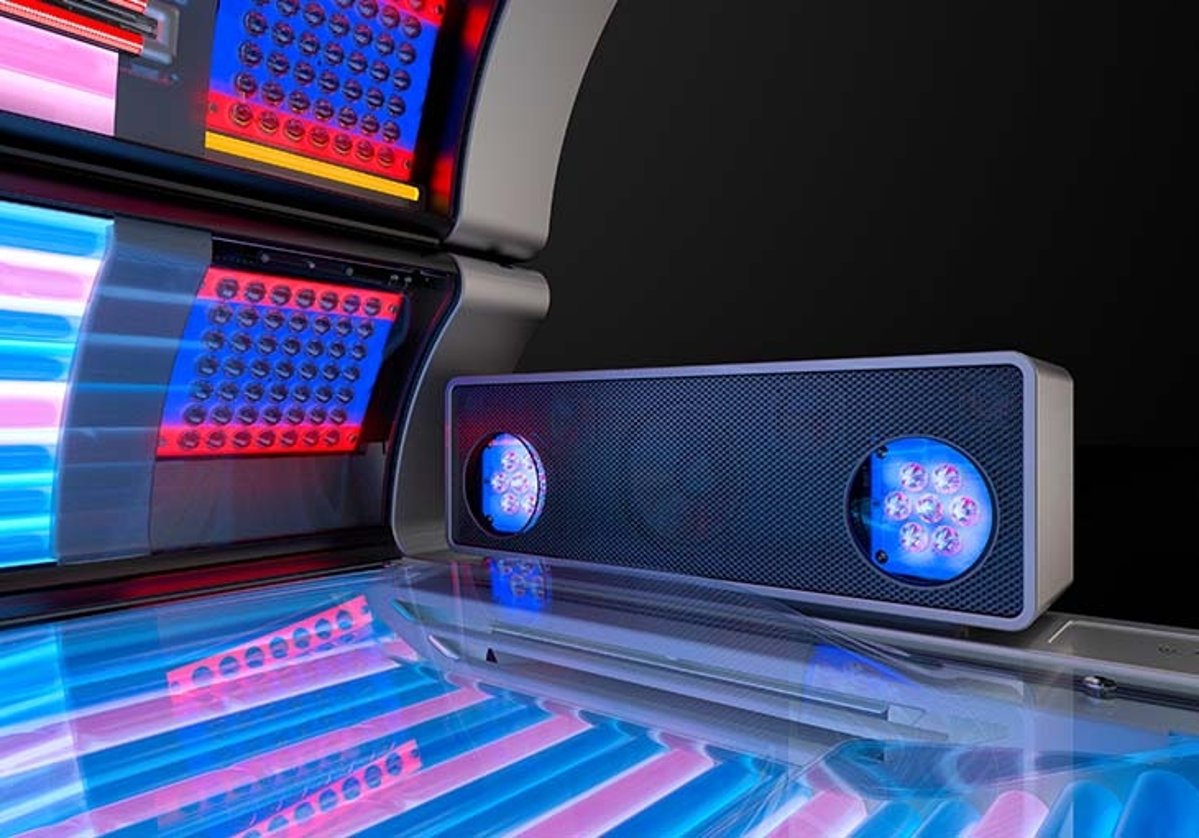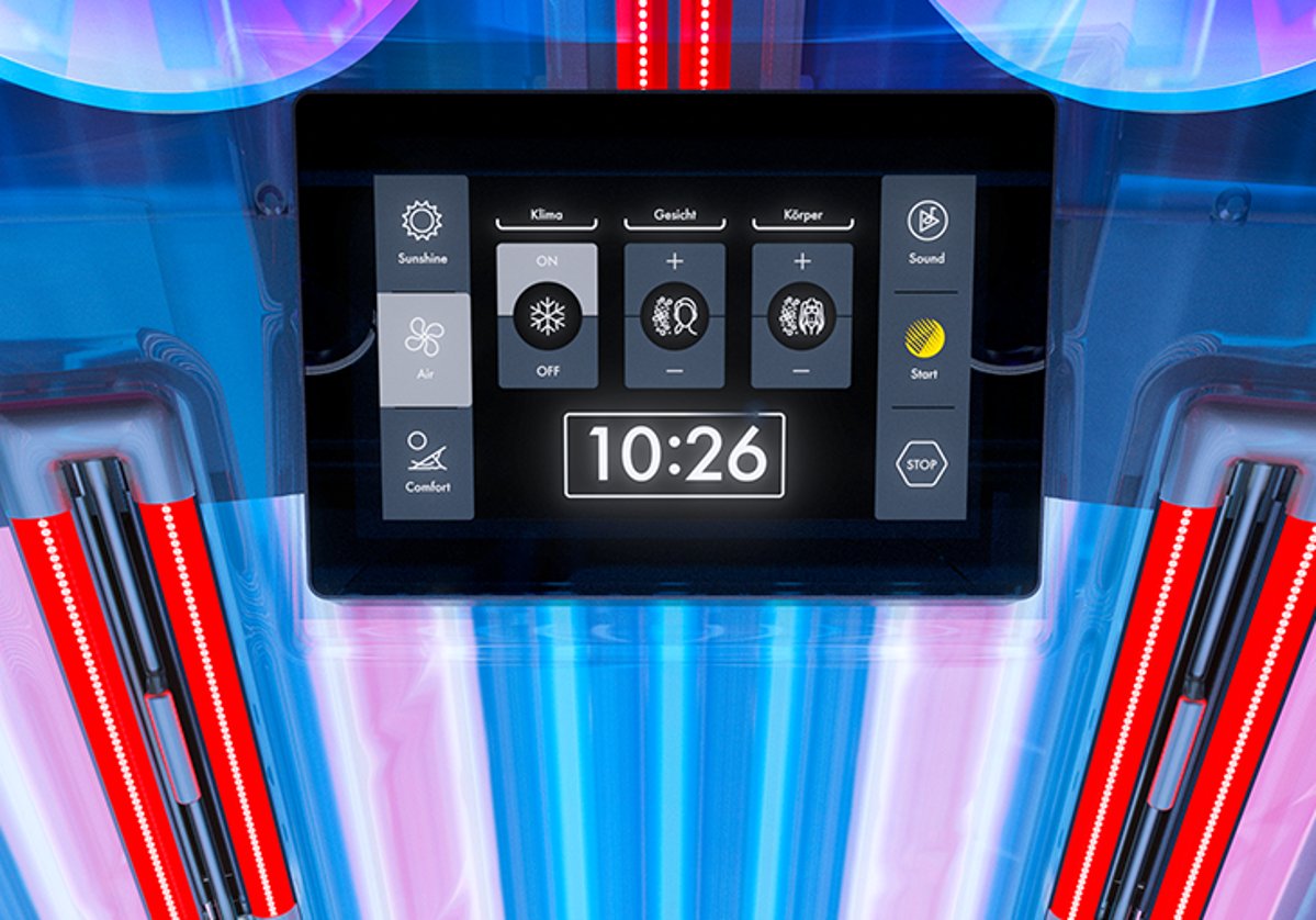 With the success of the P9S, LED technology established itself in the solarium sector. This quantum leap in terms of spectral technology is now available in the K6S and K7S. High-performance LEDs only produce the wavelengths required for a beautiful and gentle tan. At the same time, aspherical lenses in front of the LEDs guarantee an absolutely uniform illumination of the face and décolleté. Progress that can be experienced immediately.