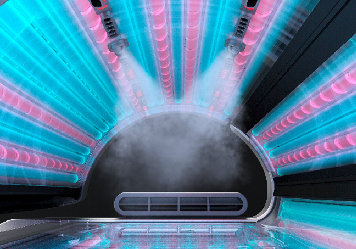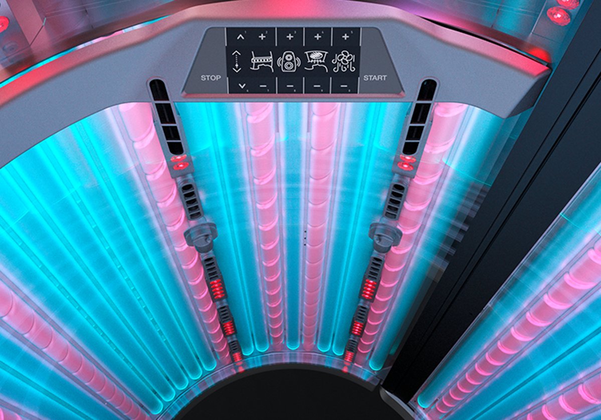Striking Optics: Solarium design in the footsteps of the legendary Porsche 911. The design icon as envisioned by Ferdinand Alexander Porsche continues to fascinate people all over the world to this day. And thus the Studio F. A. Porsche was the ideal candidate for our ambitious P9 design project. The result: a unique design that captivates your customers. The ‘Magic Silver’ chassis colour fascinates with a variety of selectable light show programmes.